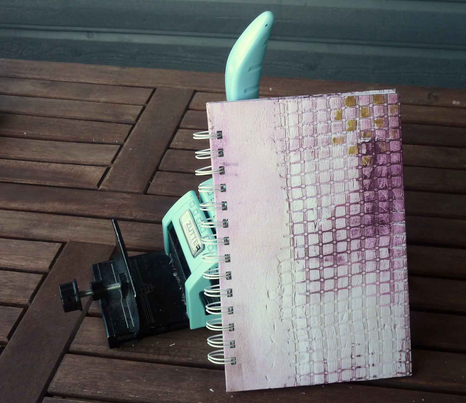 This is a tutorial on how to make more than the 6 pre-defined holes from the Bind-it all machine. I have made the cover and the pages inside the book. Almost every time I make a book I cut the pages inside the book 5 mm smaller than the cover